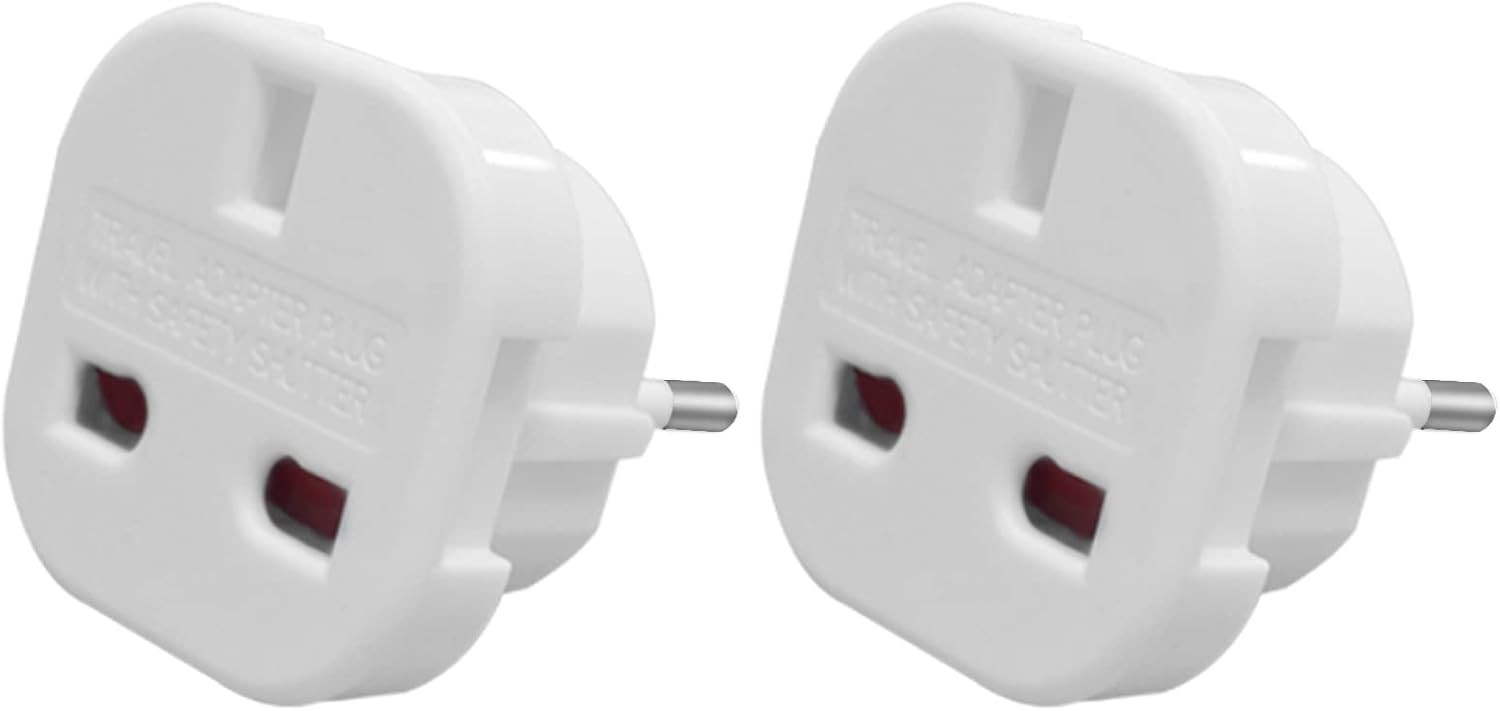 MOBIBAY Pack of 2 Travel Adaptor | UK to European Plug Adapter Converter (Euro Type C, E, F) 3 Pin to 2 Pin Type G, EU Plugs for Europe Accessories,Italy,Cape Verde,Poland,Spain,Turkey,Greece,Bulgaria