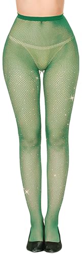 DTWAWA Sparkle Rhinestone Fishnets High Waist Tights Party Stockings for Womens - Green