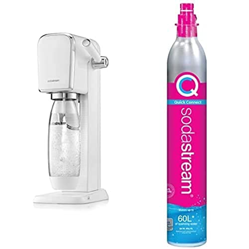 SodaStream Art Sparkling Water Maker, Sparkling Water Machine & 1L Fizzy Water Bottle, Retro Drinks Maker w. BPA-Free Water Bottle & 2x 60L SodaStream Gas Cylinders for Home Carbonated Water - White