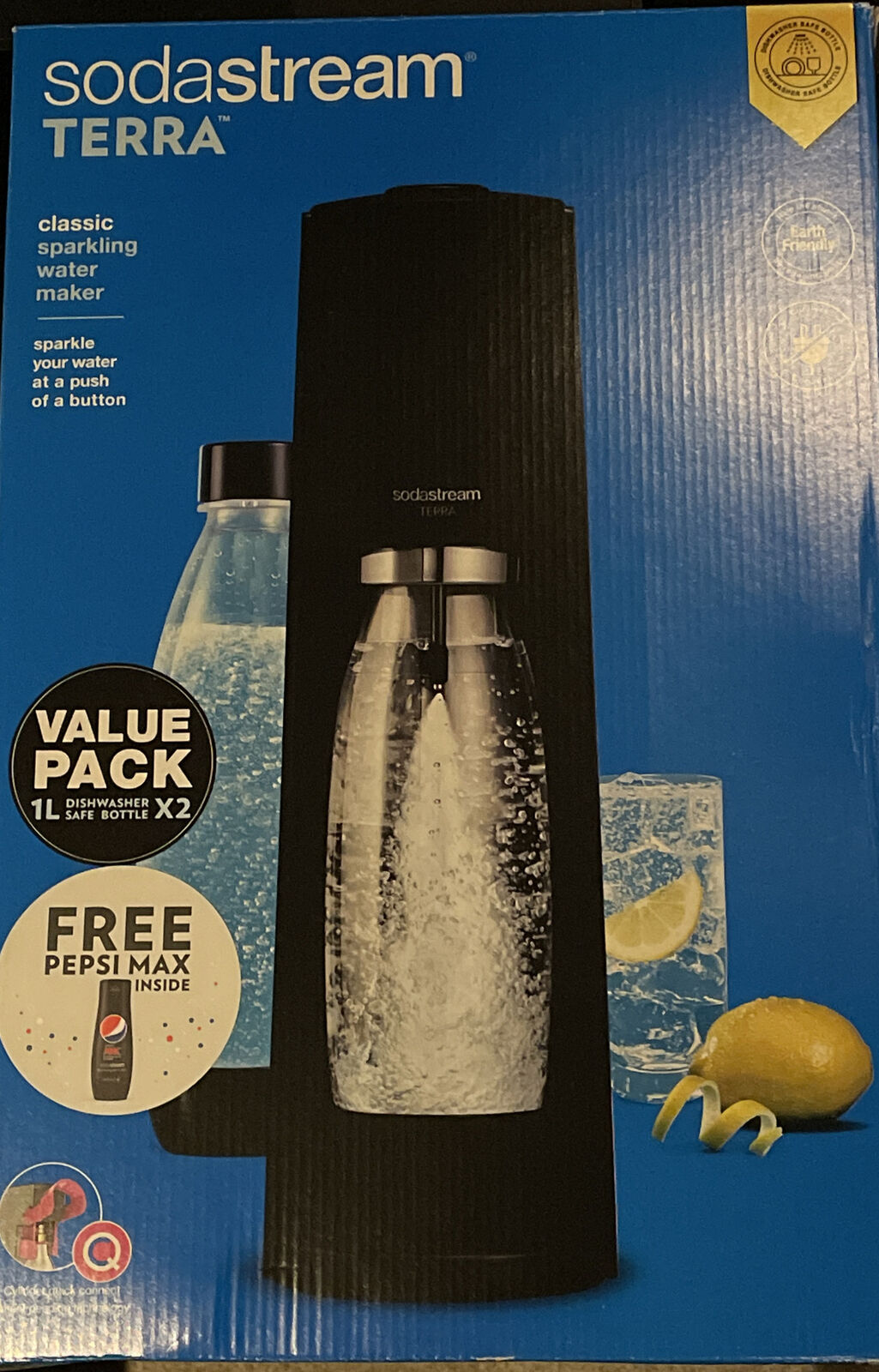 SodaStream Terra Sparkling Water Maker Machine with 2 x 1L Bottle, Pepsi Max(EXP