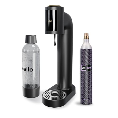 Cello Sparkling Water and Soda Maker Machine in Black with 1 Litre Reusable BPA-Free Water Bottle for Carbonating & Co2 Gas Cylinder, No Electricity Required, Sparkling Water Make