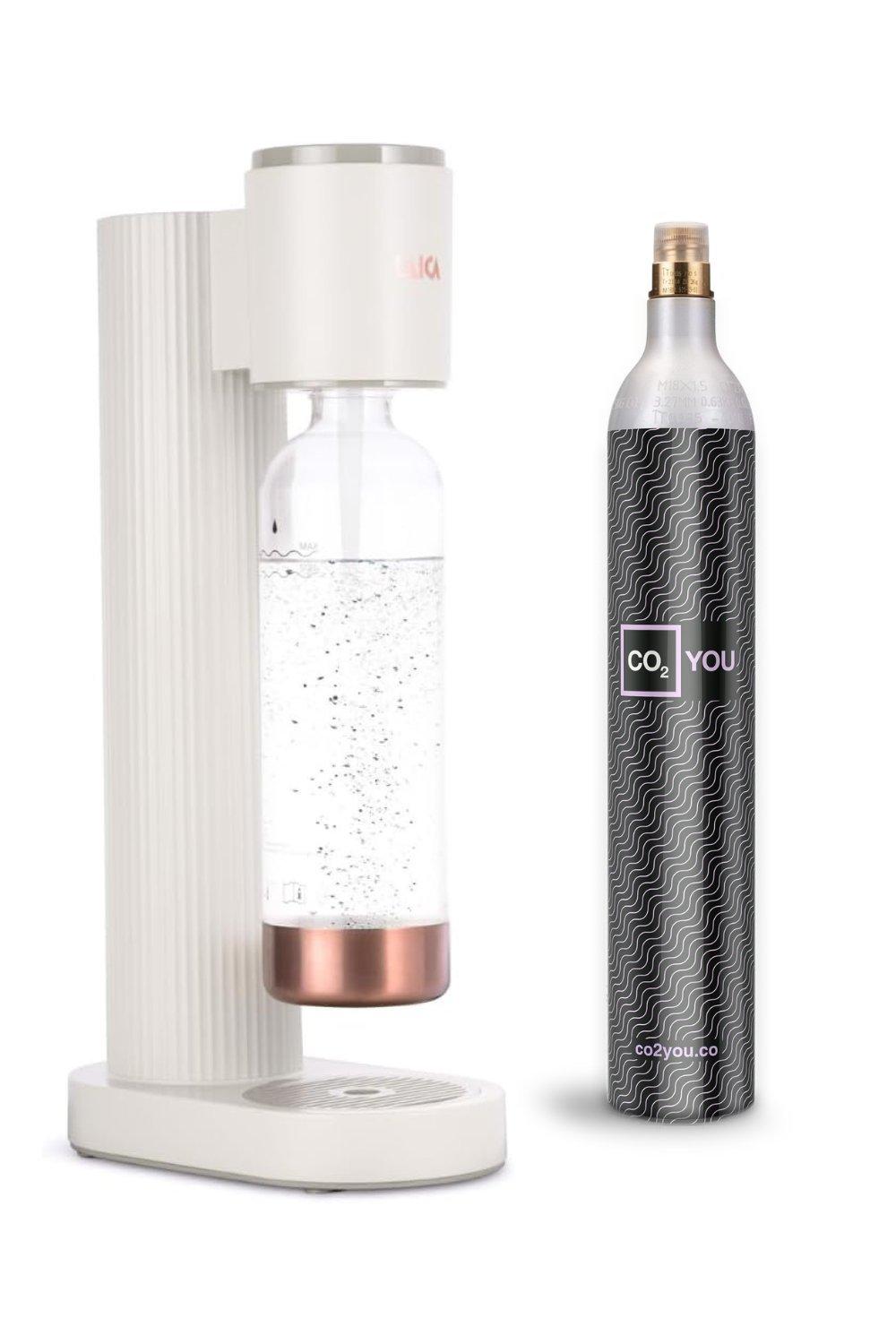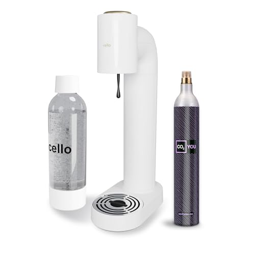 Cello Sparkling Water And Soda Maker Machine, In White With 1 Litre Reusable BPA-Free Water Bottle For Carbonating & 60 Litre Co2 Gas Cylinder No Electricty Required Sparkling Water Maker