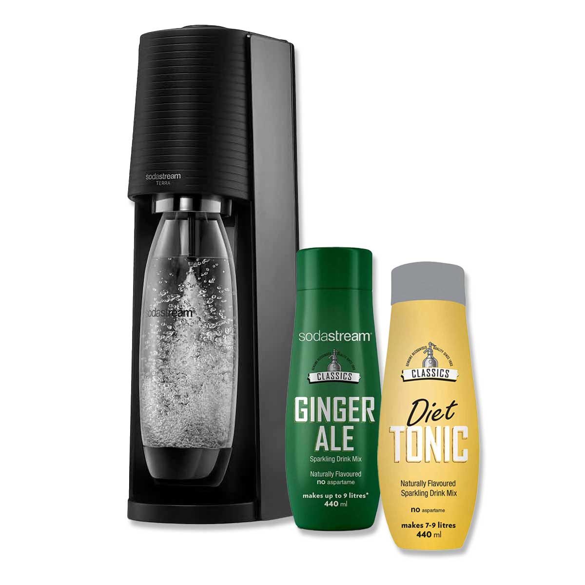 SodaStream Terra Sparkling Water Maker with Diet Tonic and Ginger Ale, Black
