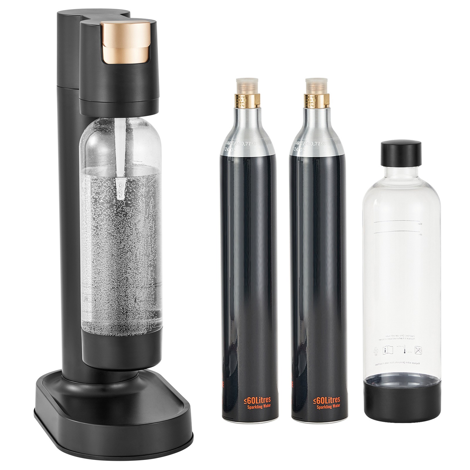 Sparkling Water Maker Soda Maker Machine 1 PET Bottle 2 CO2 Cylinder Black