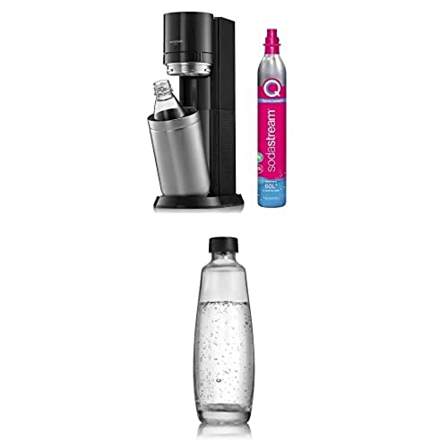 SodaStream Duo Sparkling Water Maker, 2x 1L BPA-Free Bottles, Retro Drinks Maker w. Glass Carafe & Co2 Gas Bottle - Black