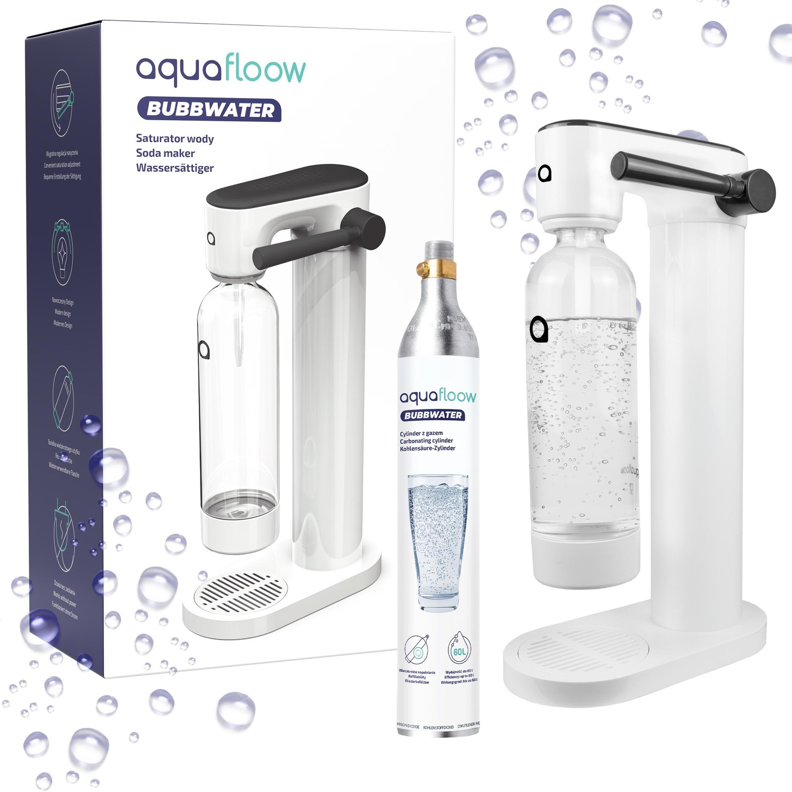 AquaFloow sparkling water maker, 800ml PET bottle, BPA-free CO2 cylinder