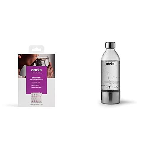 Aarke 3-Pack Enriched Filter Refill Bags – Increases The pH Value, Adds Magnesium, Reduces Unwanted Tastes and Heavy Metals & PET Bottle for Sparkling Water Maker Carbonator 3