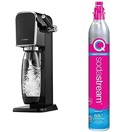 SodaStream Art Sparkling Water Maker, Sparkling Water Machine & 1L Fizzy Water Bottle, Retro Drinks Maker w. BPA-Free Water Bottle & 2x 60L SodaStream Gas Cylinders for Home Carbonated Water - Black