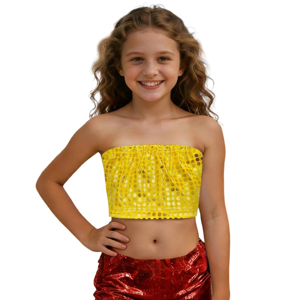 AWZXDE Girls Sparkly Sequin Wrap Crop Bandeau Top For Dance Cheerleading Photo And Kids Tops Apparel Gold,10-11 Years