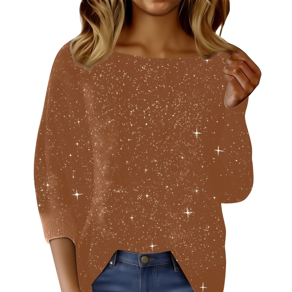 GRACE KARIN Ladies Tops Sparkly Glitter Top for Women UK Elegant Casual Tunic Party Top for Dinner Formal Evening Club S Size 8 Gold