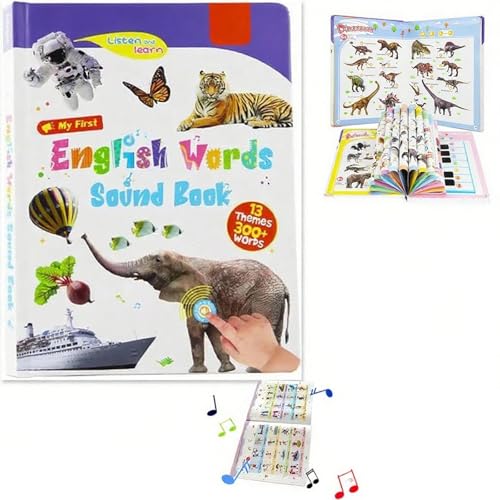 First English Words Sound Books for Toddler, Interactive Educational Learning Book for Ages 1-3, My Firsts English Sound Toy 13 Themes, Speak and Spell, Fun Word Game for Educational Language