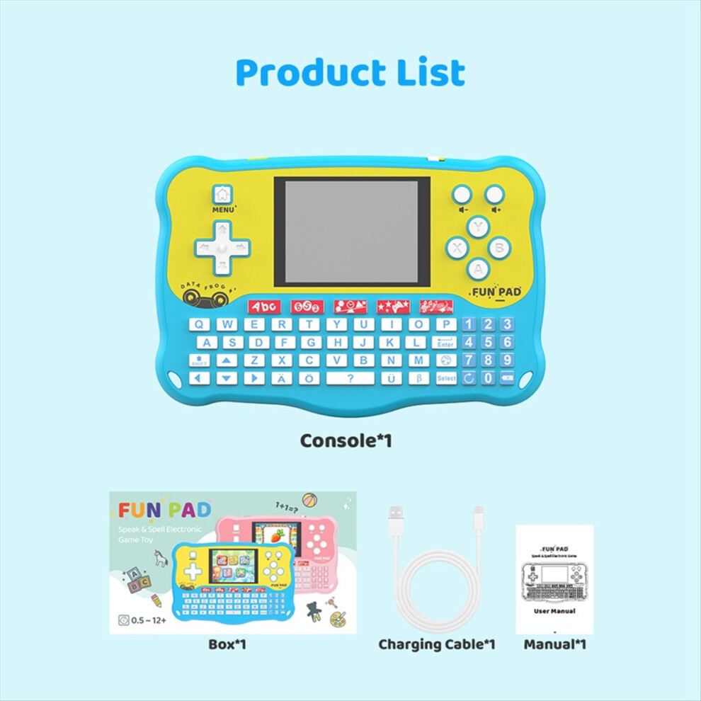 Baby Tablet Early Learn Education Machine Toddlers Speak Spell Language Electronic Handheld Game Console,Blue