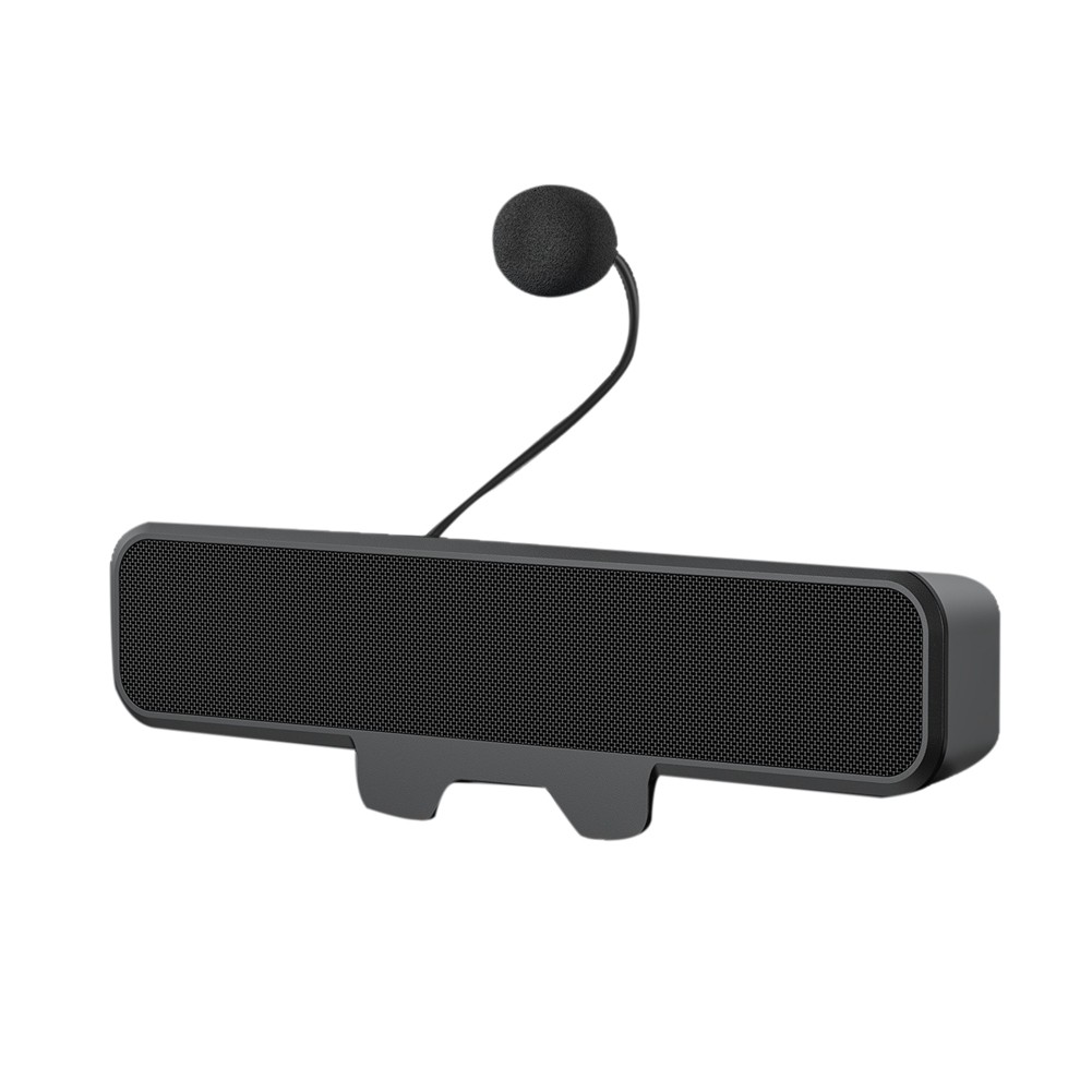 USB Sound Bar Speaker with Removable Microphone Easily Clamps to Monitor E5R6