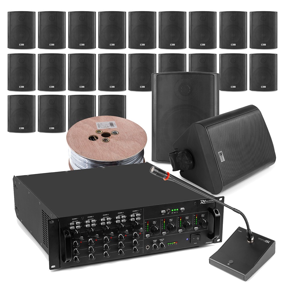 Commercial Background Music System - 24x Wall Speakers BC50VBK and Paging Mic
