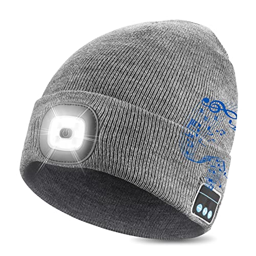 WEITOO Unisex Bluetooth Beanie Cap Light, Upgraded Musical Knitted Cap with Headphone and Built-in Stereo Speakers & Mic, Gifts for Men Women Dad Grey