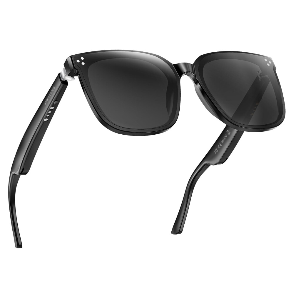 Open Ear Speakers and Mic in Smart Sunglasses, Audio Bluetooth Glasses with Voice Assistant Functionality, Waterproof Bluetooth Smart Glasses for Clea