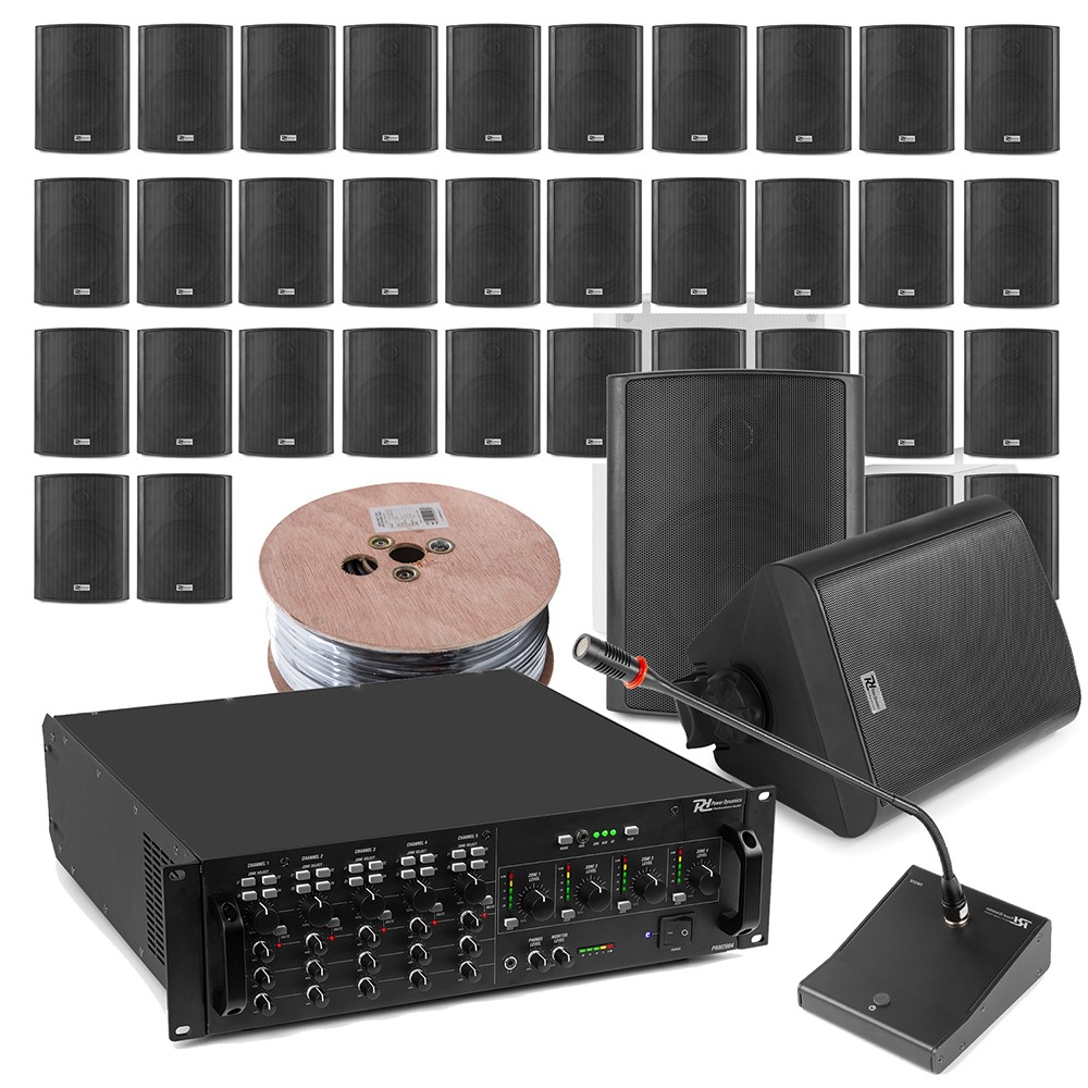 Commercial Background Music System - 32x Wall Speakers BC40VBK and Paging Mic