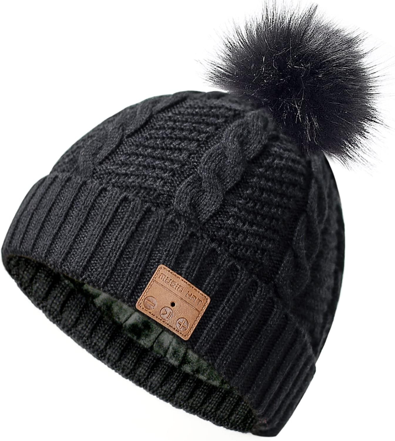Bluetooth Beanie Hat,Upgraded Hat Headphones Headset Winter Music Hat Knit Running Cap with Speakers & Mic Unique Christmas Tech Gifts for Women Mom Her Him Men Teens Boys Girls Black