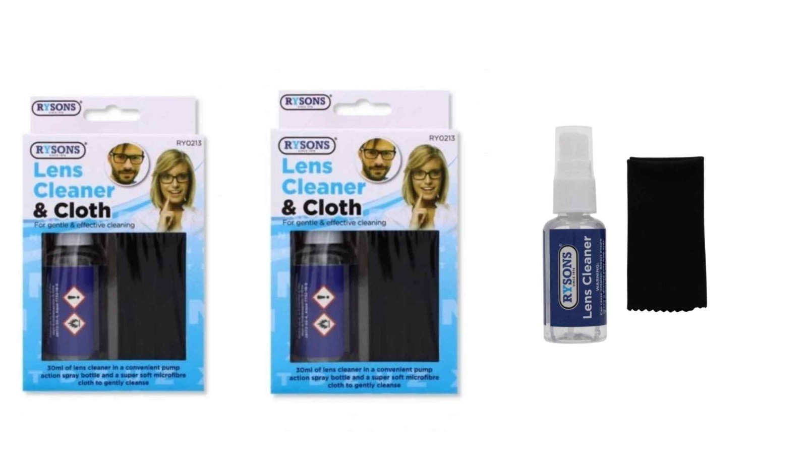 Lens Screen Glasses Spectacle Monitors Phones Cleaner Spray Wipe Lint Free Pk 2