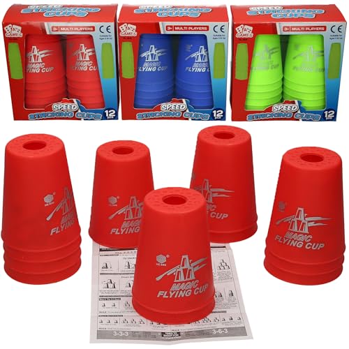 Speed Stacking Cups, Magic Flying Cup Game, Multi Players, 12 Pieces, Ages 3 & Up, Red/Blue/Green
