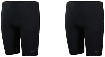 Speedo Boy's ECO Endurance+ Jammer, Comfortable Fit, Adjustable Design, Extra Flexibility, Quick Drying, Black, 11-12 Years (Pack of 2)