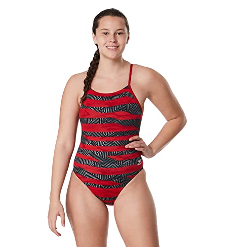 Speedo Womens Swimsuit One Piece Endurance+ Cross Back Printed Adult Team Colors, Contort Red, 22