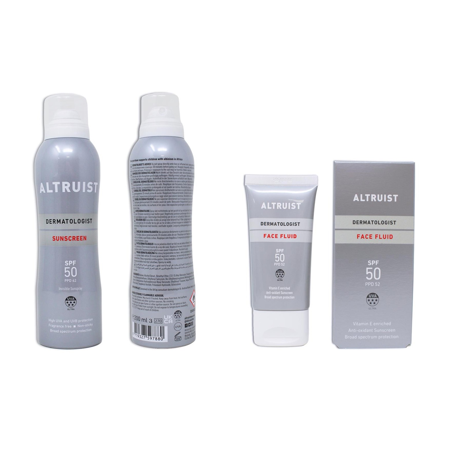 Altruist Sun Cream Face Fluid &Spray Bundle Dermatologist Sensitive Skin SPF 50