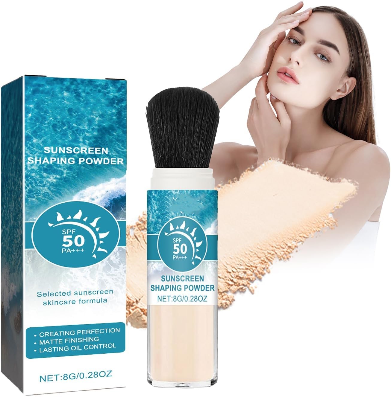 SPF 50 Powder Face Scalp Sunscreen, Lasting Lightweight Breathable, Oil Control