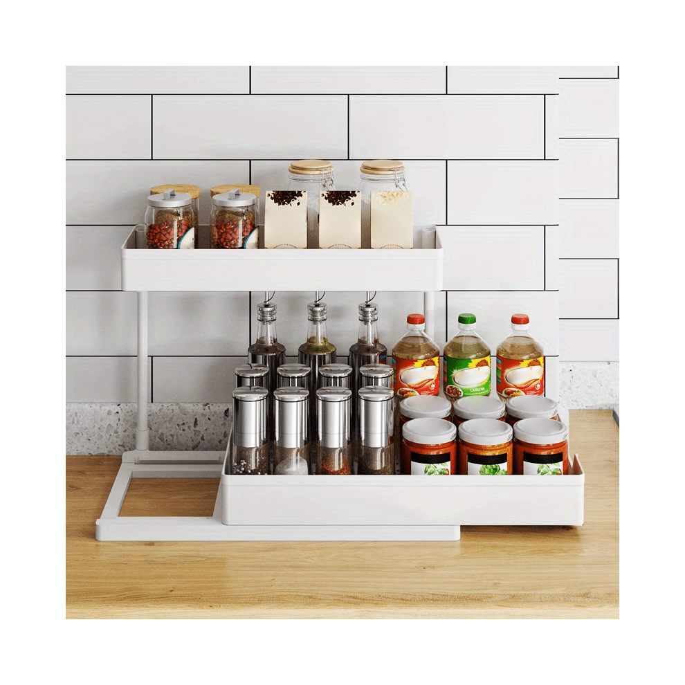 Easy To Use Rotating Storage Rack, Multi-function 2 Tier Pull Out Kitchen Cabinet Spice Organizer, Sliding Spice Rack for Spices Condiments and Kitche