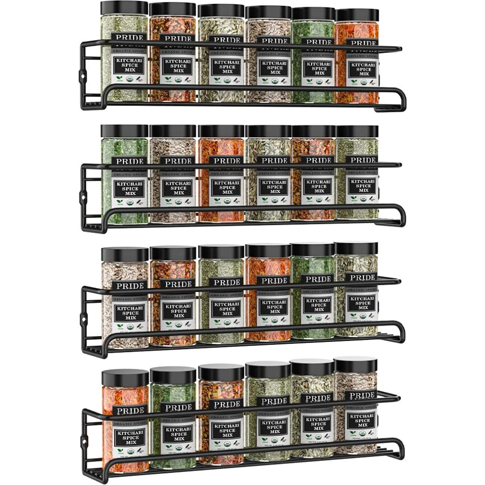 Spice Racks - 4 Tier Hanging Stainless Steel Spice Rack, Adhesive Stickers & Screws Kitchen Spice Rack For Spices , Jars (Black)