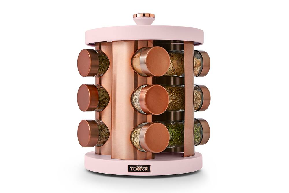 Tower Cavaletto Spice Rack, 12 Pre-Filled Spices, Pink & Rose Gold T826022PNK