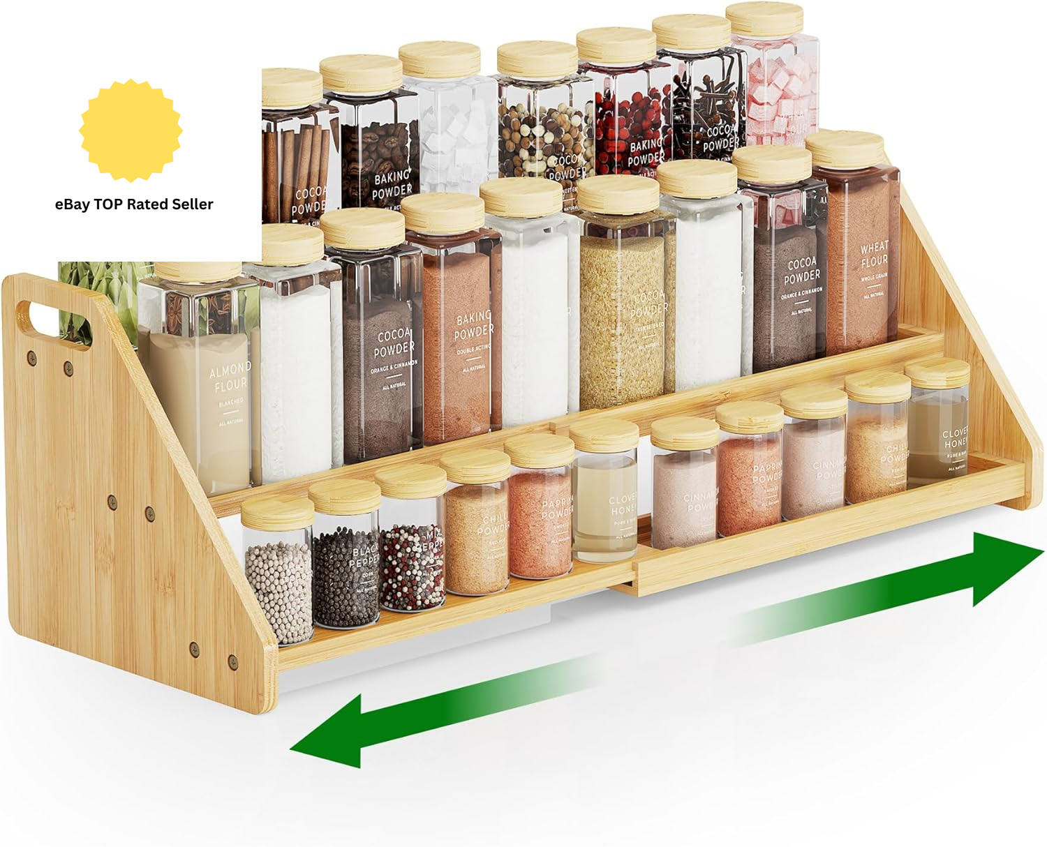 Bamboo Spice Rack Shelf Spices Drawers Organization Multifunctional Storage Counter Condiments Containers