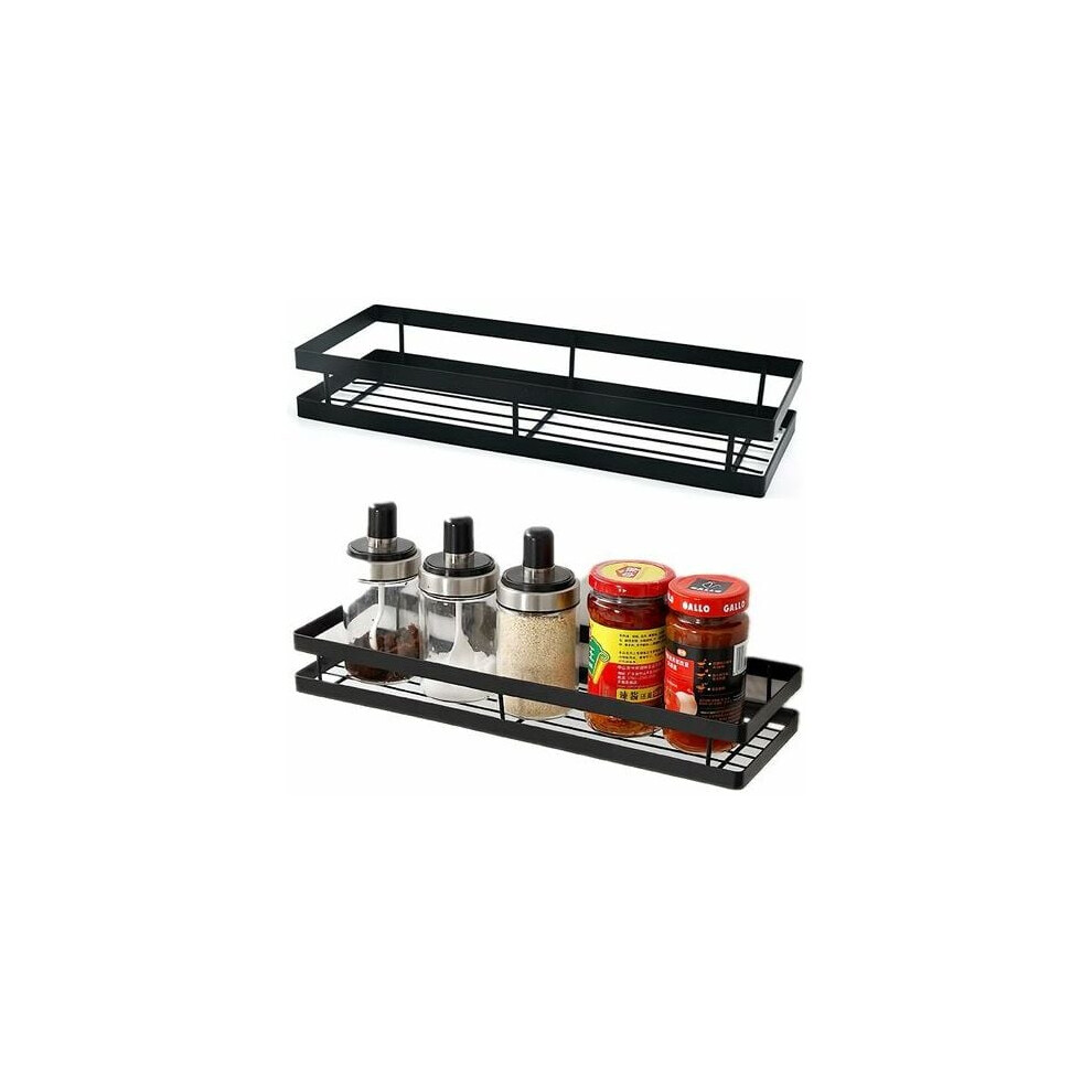 Set of 2 Shelf Spice Rack Kitchen Wall Spices Storage Shelf Space Saving Spices 30125.5 Cm Black