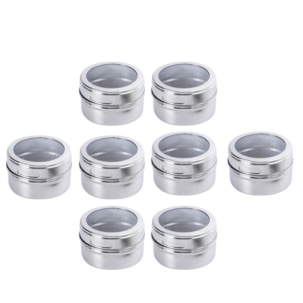 (A) Kitchen Magnetic Spice Jars Rack Spices Storage Stainless Steel Condiment Pot Seasoning Shakers Containers