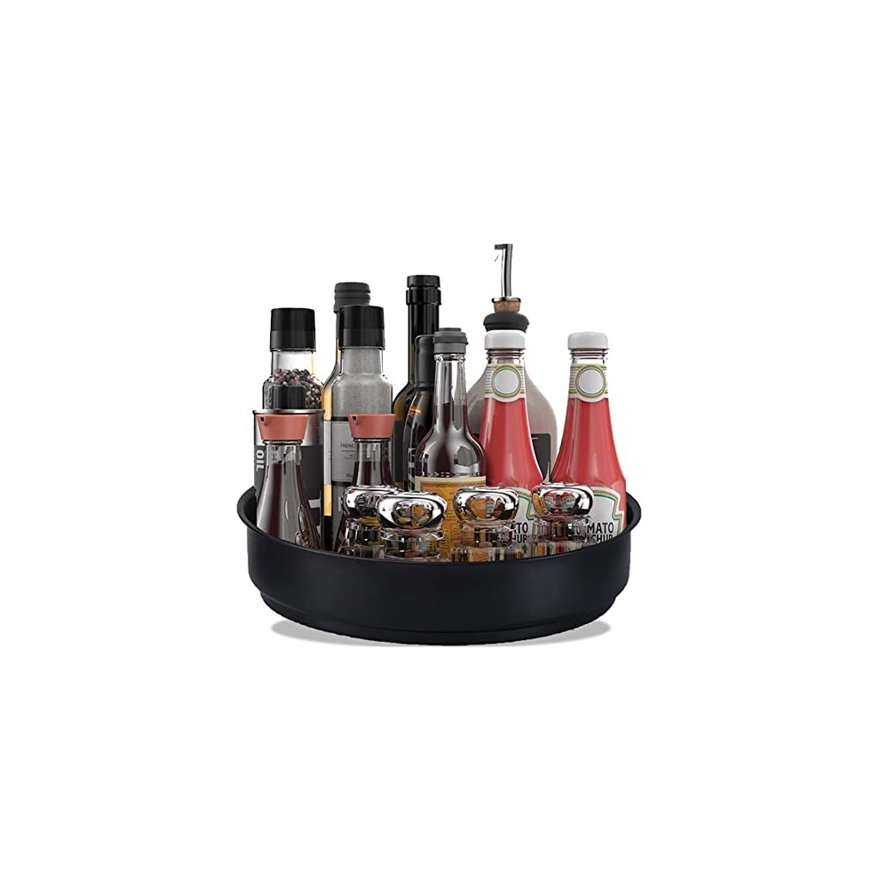 Turntable, Plastic Rotating Spice Rack for Spices Condiments Kitchen Storage, Kitchen Cupboard Turntable, Spice Turntable 22.5*6.5cm (Black)