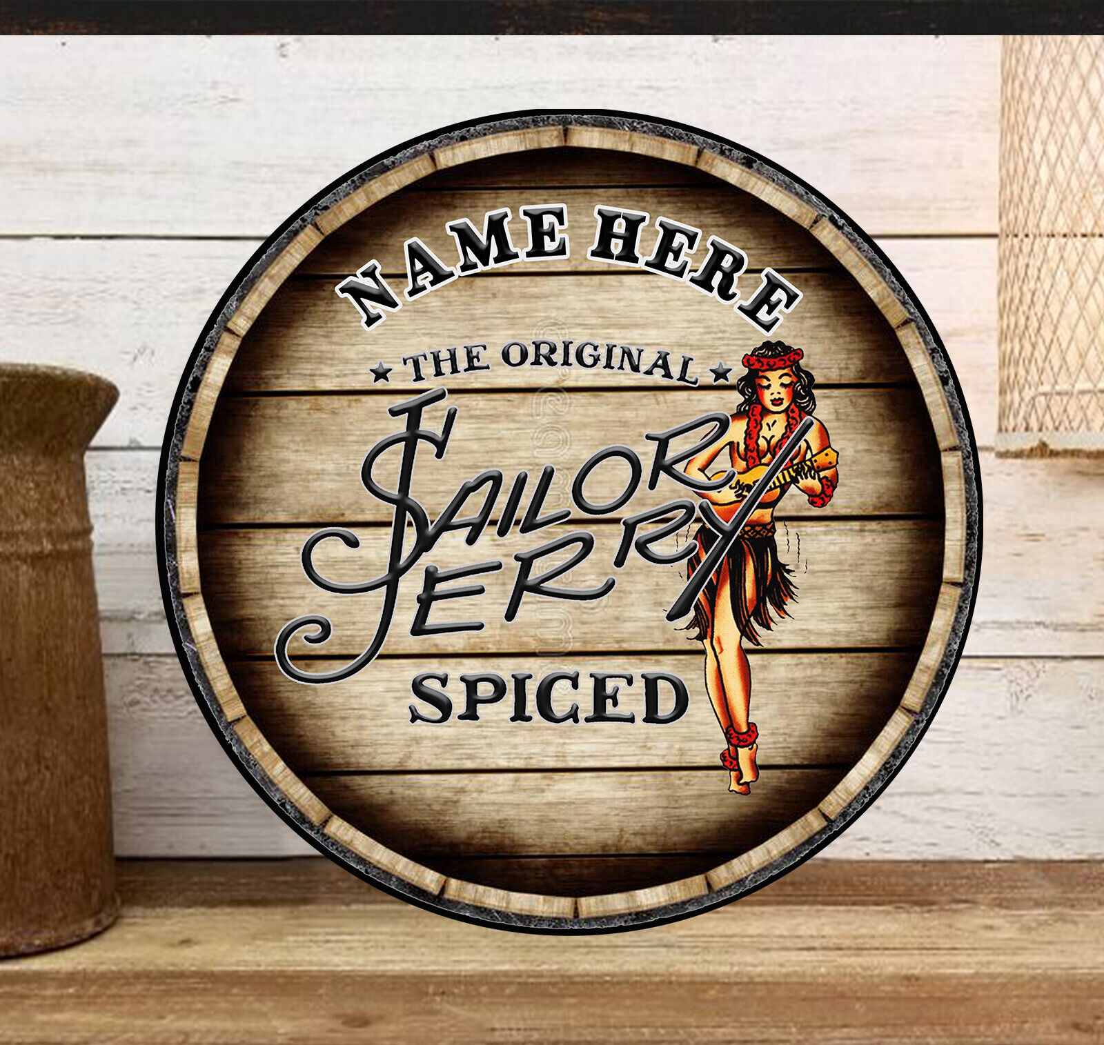 Personalised Sailor Jerry spiced Rum Bar Round wall Shed Retro RRS067