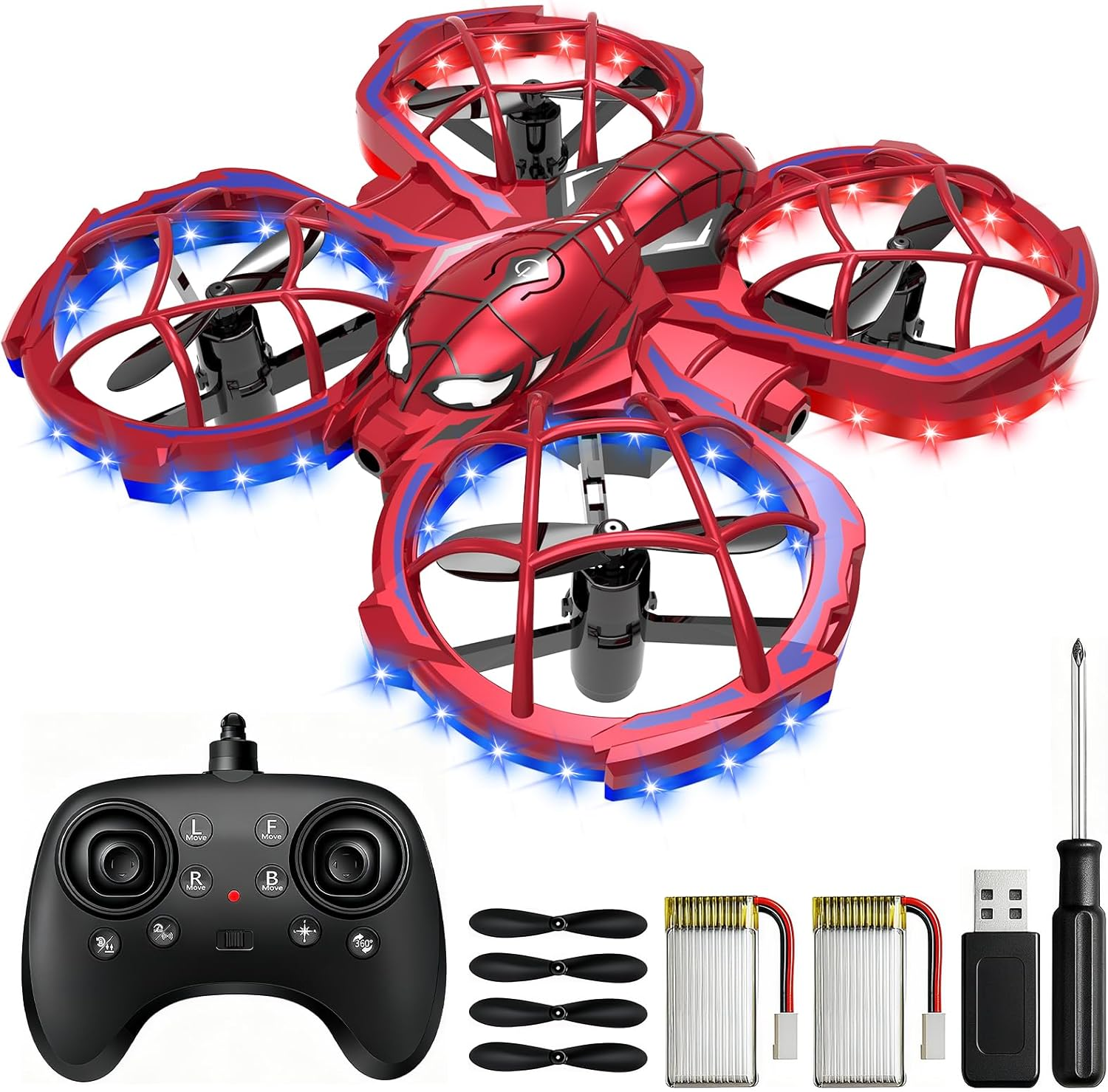 Spider Mini Drone for Kids Beginners - Cool Toss to Go RC Quadcopter with LED Lights, 3D Flips, 2 Rechargeable Batteries, Headless Mode, 3 Speed Mode, Obstacle Avoidance Function, Indoor Outdoor Toys