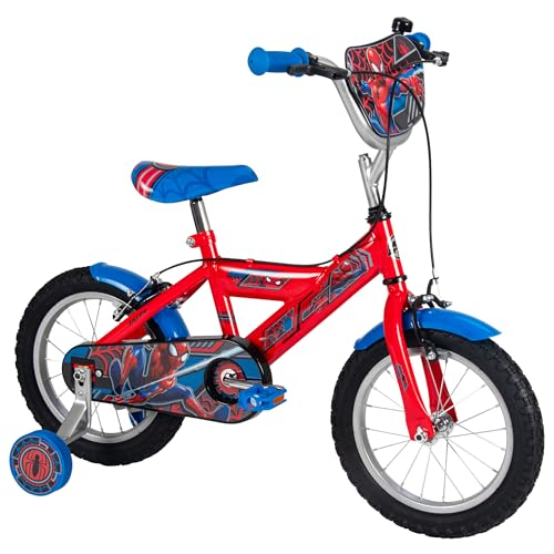 Huffy Marvel Spider-man 14" Kid’s Bike, aged 4-6 years, Dual Calliper Brakes, Removable Stabilisers, Adjustable Seat, Red