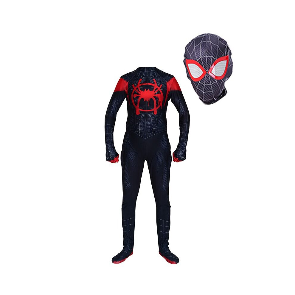 (Jumpsuit+Cloth Eyes HeadCover, 2XL(Suggest Height 160-170 cm)) Spider-Man: Into the Spider-Verse Kids Adult Costume Miles Morales Cosplay Suit