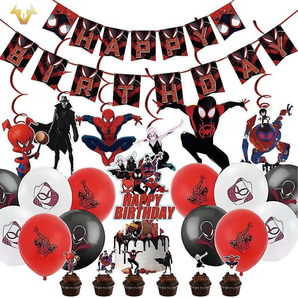Spider-man: Into The Spider-verse Themed Birthday Party Decoration Balloons Banner Cake Topper Hangi