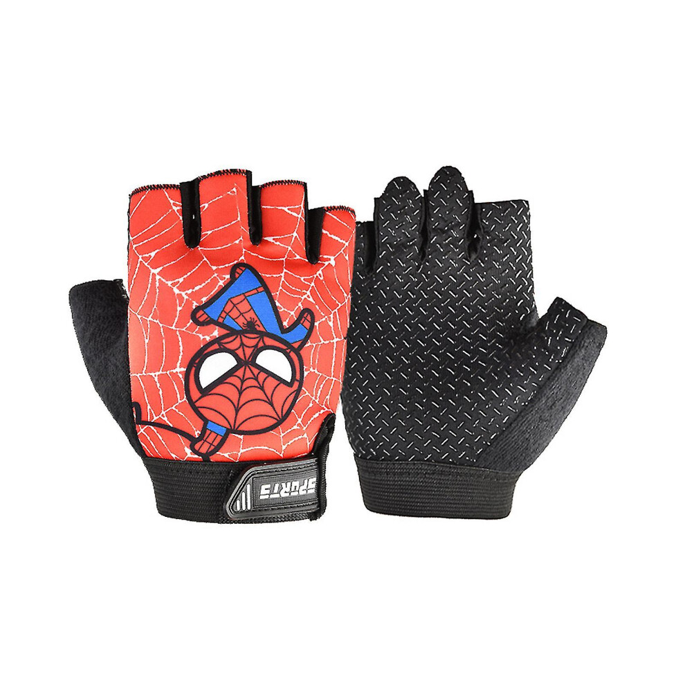 (Red, S) Reducedbreathable Cartoon Spider-man Riding Kids Gloves Half Finger Bike Sports Cycling