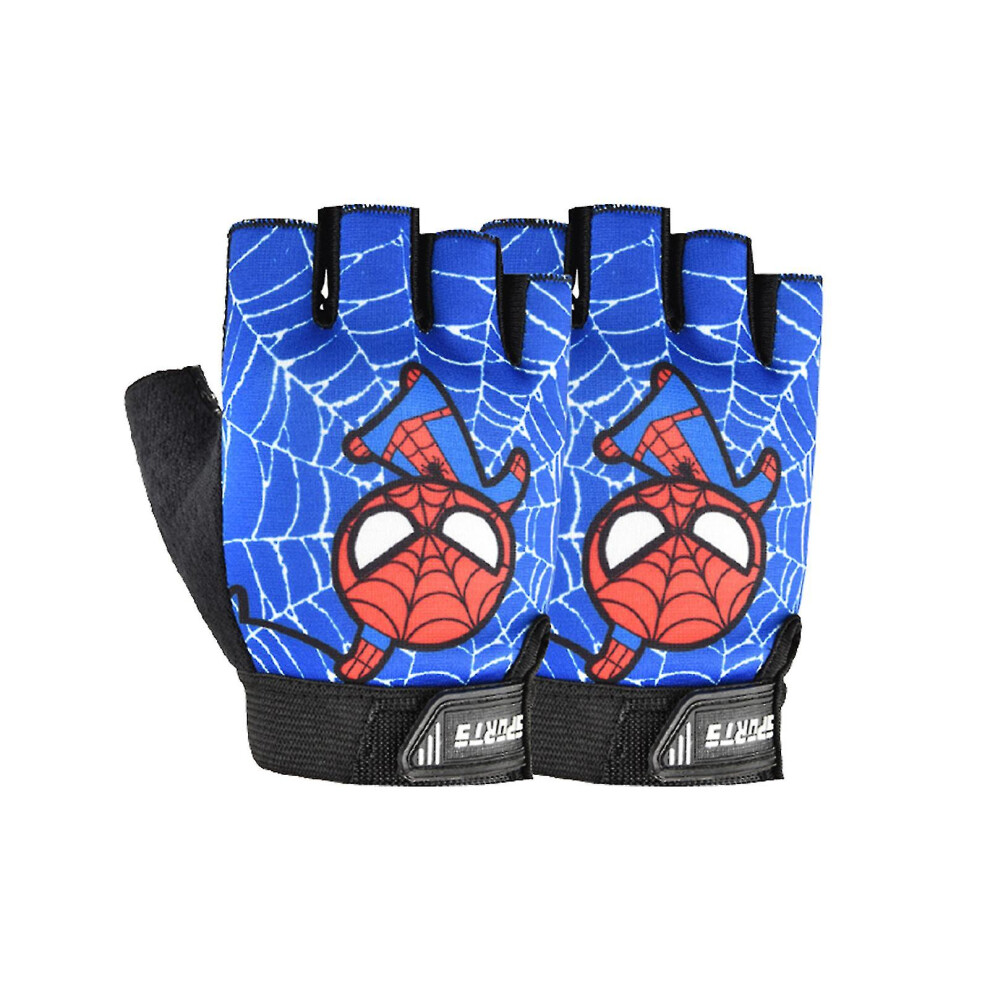 (Blue, S) Reducedbreathable Cartoon Spider-man Riding Kids Gloves Half Finger Bike Sports Cycling