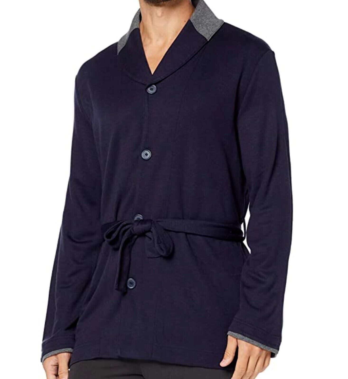 LVB Men’s Navy Dressing Gown – Home Robe With Belt & Pockets, Size Small