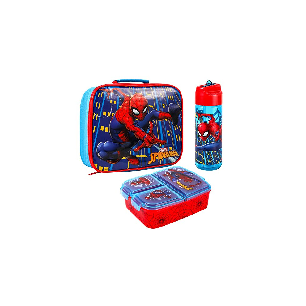 Spiderman Kids Childrens Lunch Box Set â Insulated Lunch Bag, Multicompartment Lunch Box & 540ml Water Bottle - School Travel Lunch Food Set, BPA