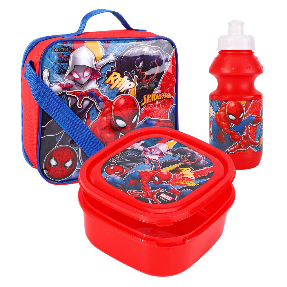 Marvel Spiderman Insulated 3 Piece Lunch Bag Set Boys Sandwich Box Sports Bottle
