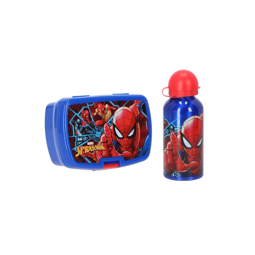 Diakakis Spiderman Kids Childrens Lunch Set ? Sandwich Box & Aluminium Water Bottle 500ml - School Travel Lunch Food Set, BPA Free, Spiderman Design