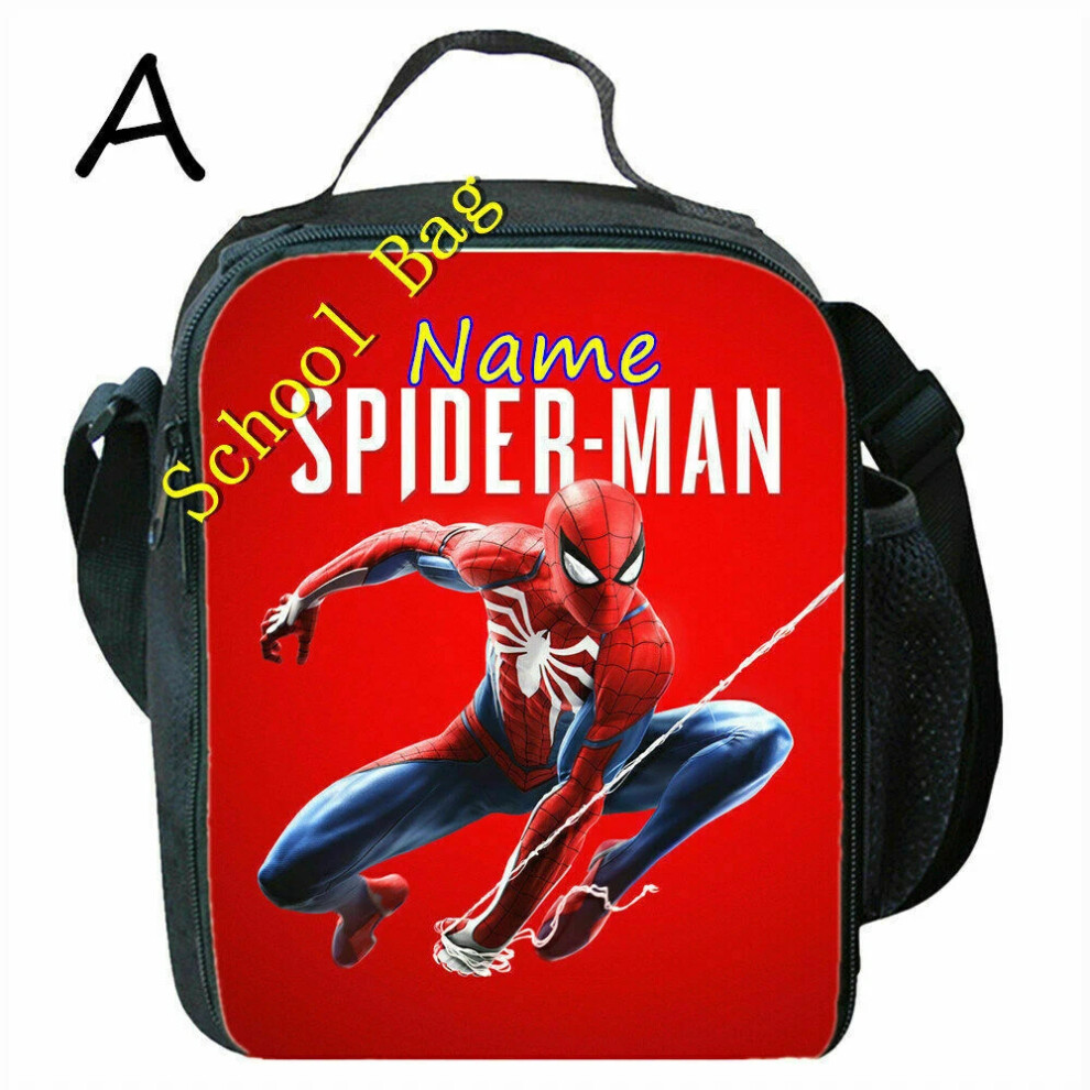 (A) Spiderman Personalised Insulated Lunch Bag Boys Girls Leakproof School Food Box