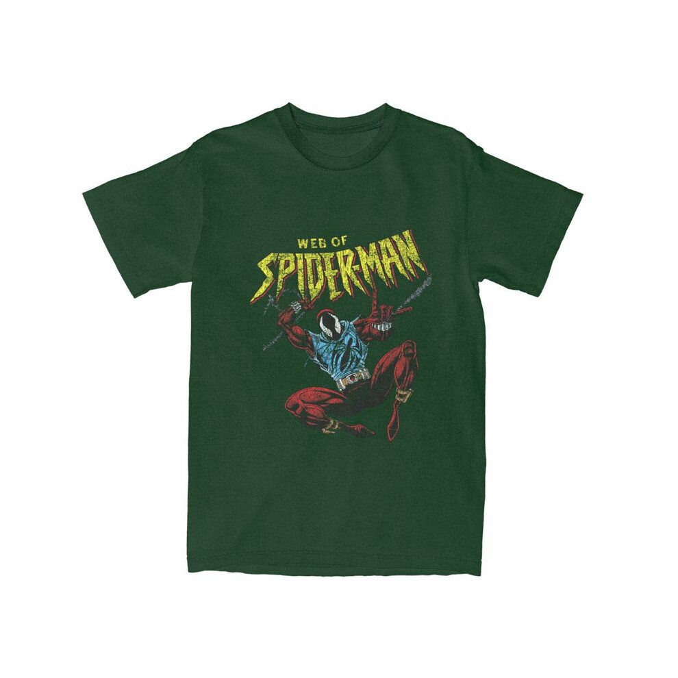 (Dark Green, M) Web Of Spider-Man Marvel Spiderman T-Shirts for Men Crew Neck 100% Cotton T Shirt Short Sleeve Tee Shirt 6XL Clothing