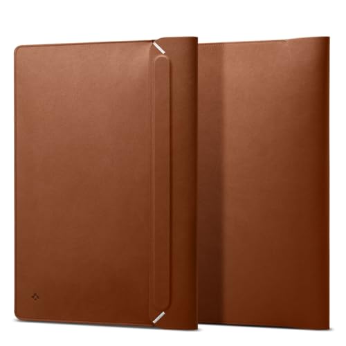 Spigen Laptop Sleeve Valentinus 15 15.6 16 Inch, Compatible with MacBook Pro, Built in Magnetic Flap, Leather Laptop Case, Laptop Pouch Bag - ClassicBrown