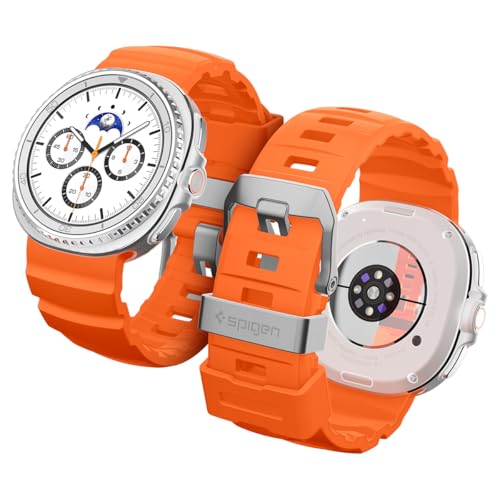 Spigen Rugged Silicone Sport Band with Metal Buckle Strap Compatible with Samsung Galaxy Watch 8 40mm/44mm (2025), Samsung Galaxy Watch 8 Classic 46mm (2025) - Orange